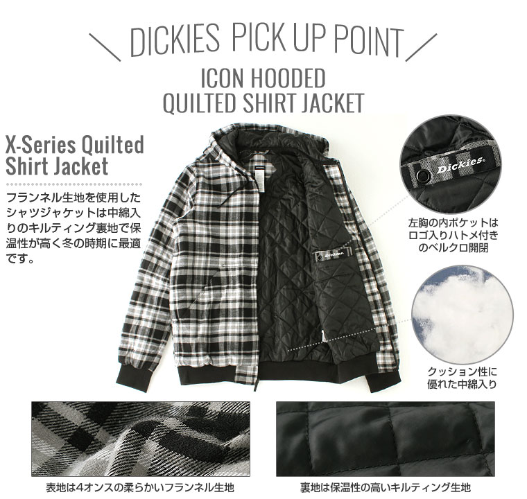 ディッキーズ シャツジャケット フード付き キルティング ライニング TJ204 メンズ|大きいサイズ USAモデル Dickies|ワークジャケット 防寒 アウター ブルゾン XL XXL LL 2L 3L 【W】