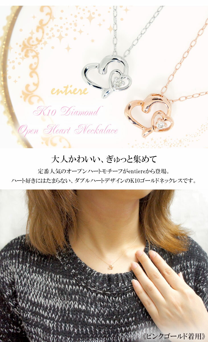 entiere くまのぬいぐるみ付き K10ゴールド 選べる2色 オープンハート ダイヤモンド WG PG ネックレス ダイヤモンド K10 レディース 女性 プレゼント 誕生日 記念日 ギフトBOX ジュエリー ブランド 人気 彼女 かわいい おしゃれ